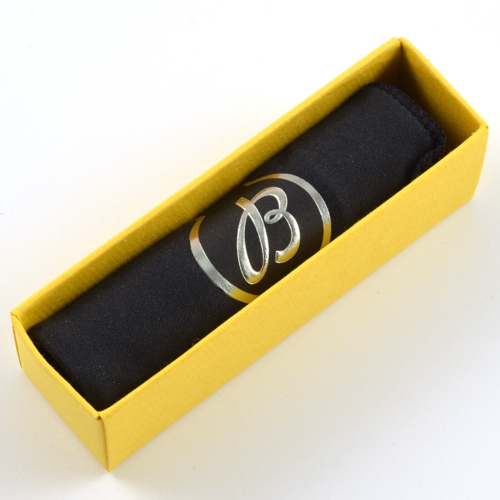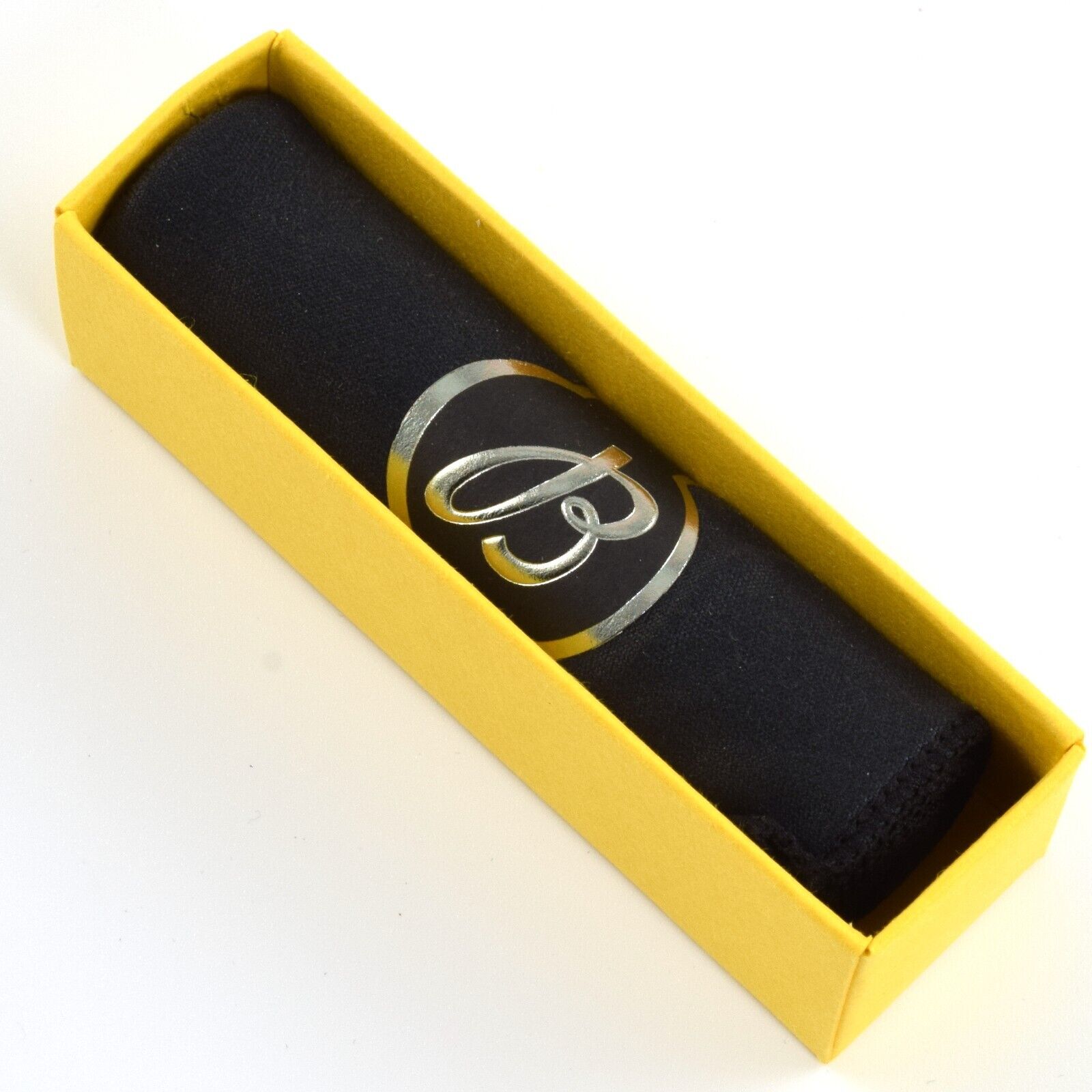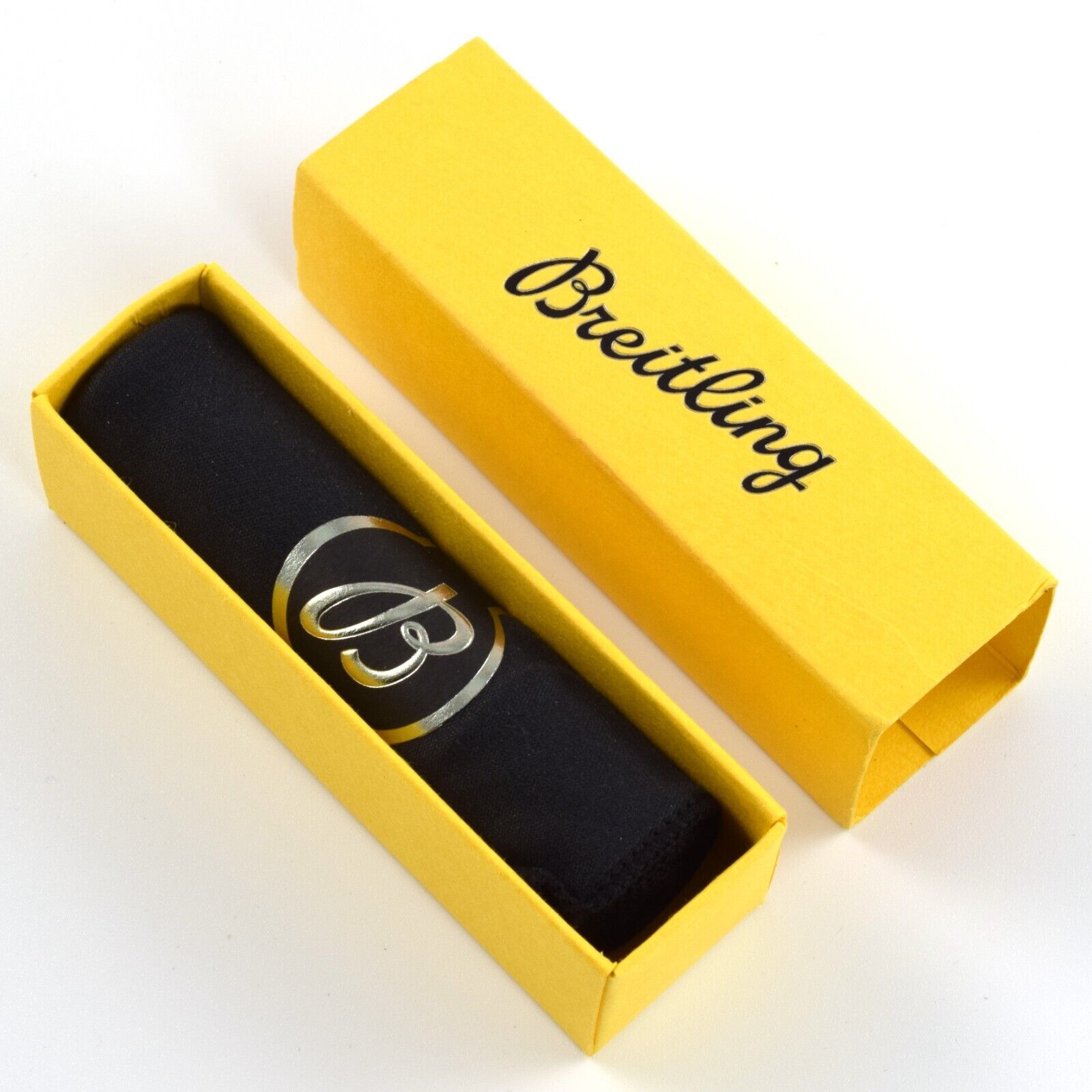 This is a new authentic Breitling watch polishing cloth that has never been used. It comes complete with the original yellow box for safe and convenient storage. The black cloth is designed to gently clean your Breitling watch without causing any damage, ensuring it maintains its gleaming shine over time.