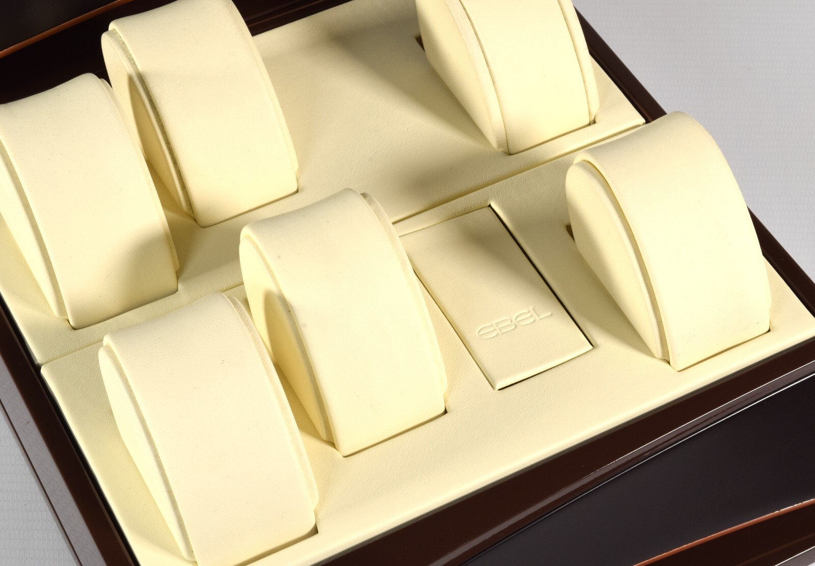 - Includes: 7 cream leather watch pillows and 2 EBEL-marked leather plugs