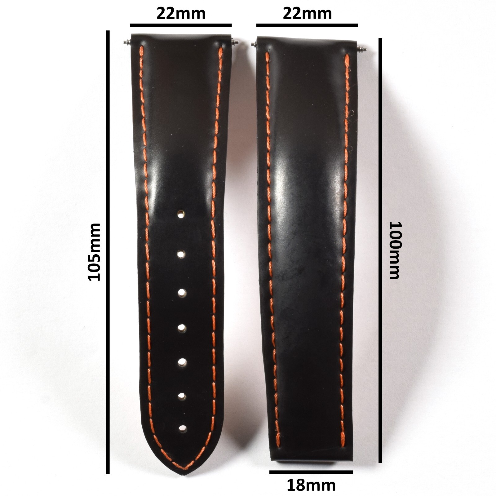 - Width: 22mm at the watch end and tapers to 18mm at the buckle end