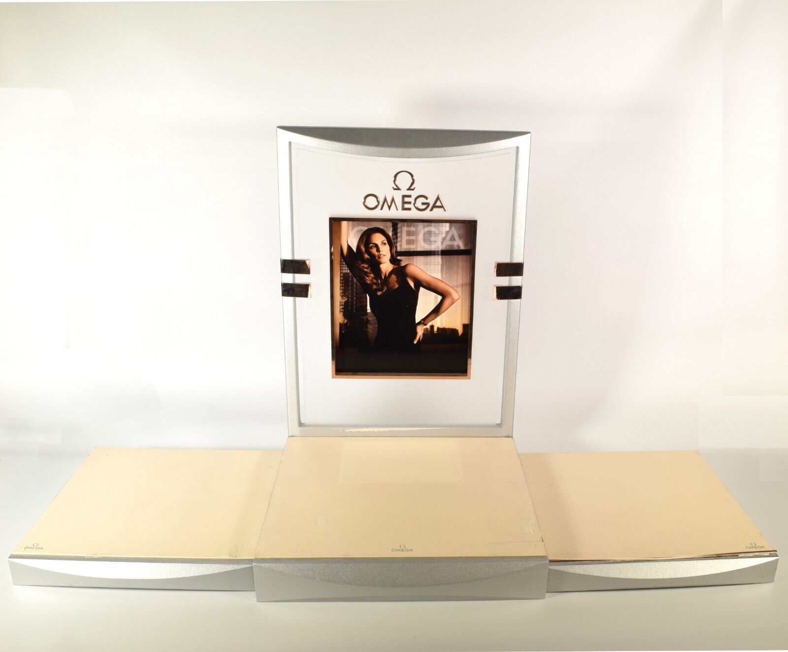 - Includes: Reversible Nicole Kidman / Zhang Ziyi display panel and three Omega-branded leather trays