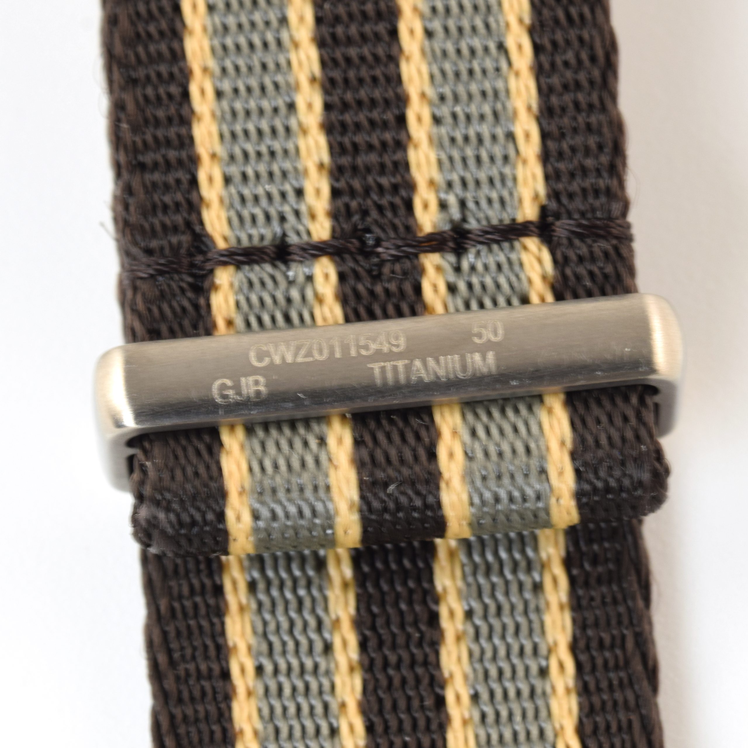 - Engraving: Keepers engraved with “Omega”, “007”, and “CWZ011549 50 GJB TITANIUM”