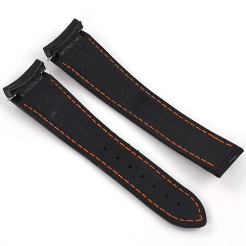 This is an authentic Omega Planet Ocean black rubber watch strap with orange stitching, part number 98000291. While there is some minor wear to the edges where the watch sits, it is fully functional and ideal for replacement or upgrade purposes.