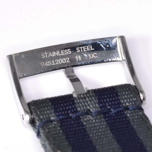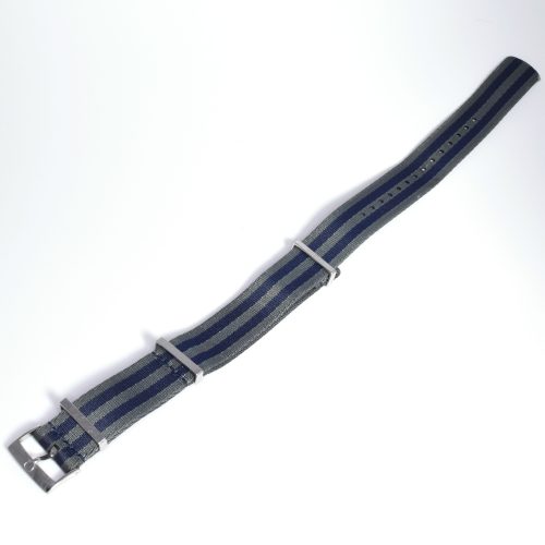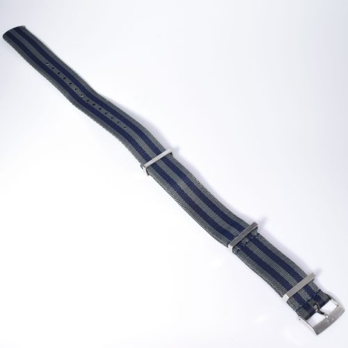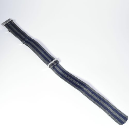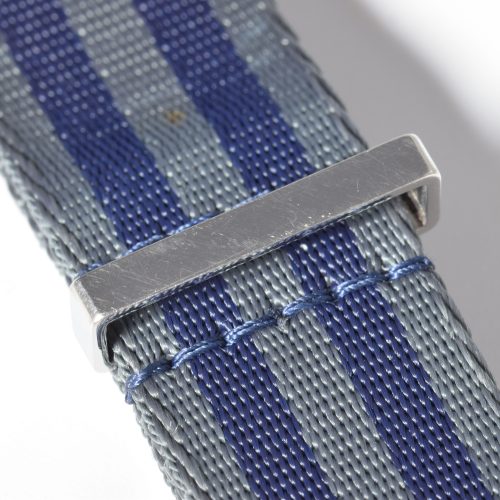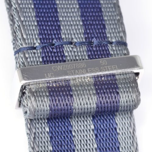 This is an authentic Omega NATO CWZ007886 men’s watch strap, featuring blue and grey stripes. Made from durable polyamide, this high-quality strap is designed to fit Omega Seamaster models with lugs measuring 20mm or 19mm wide.