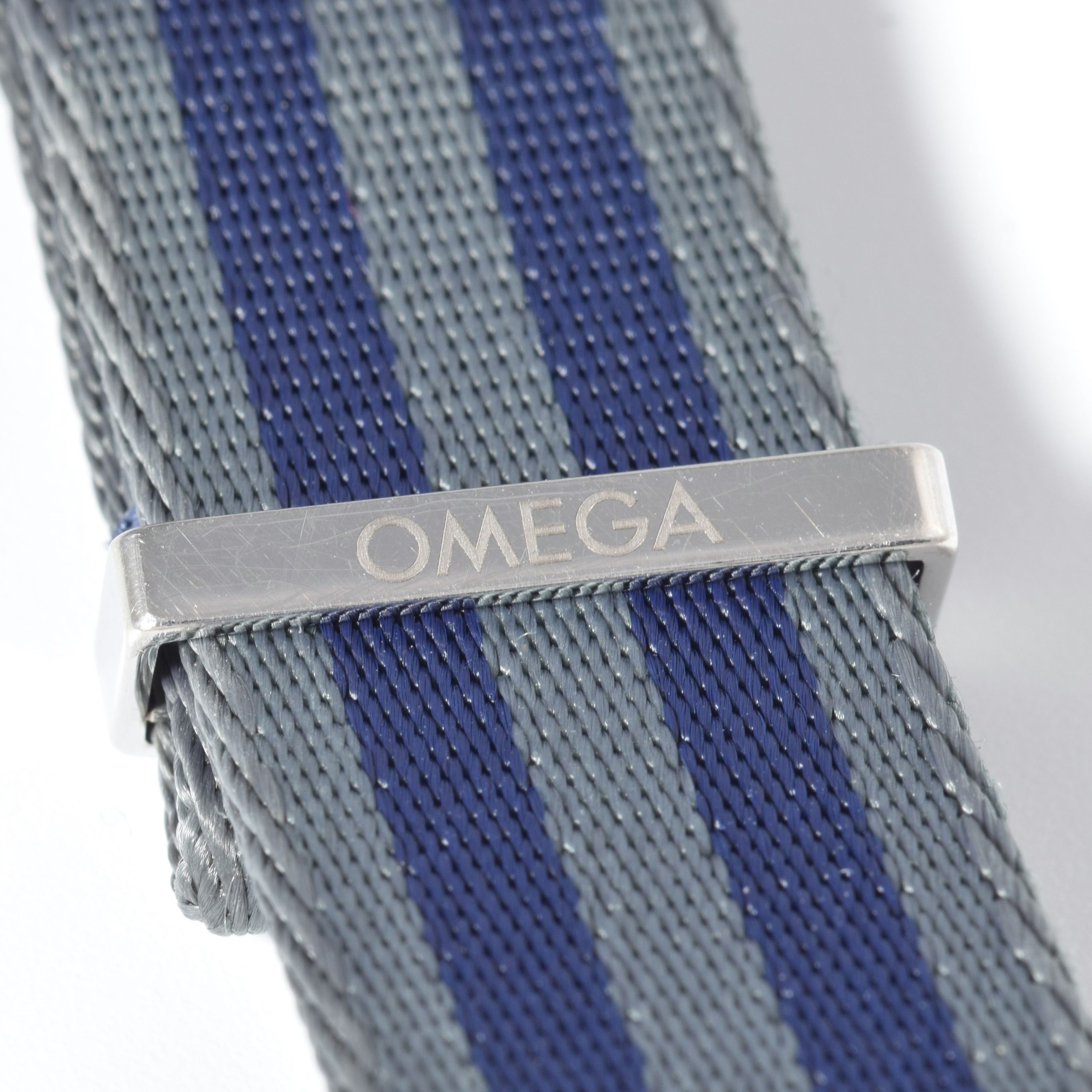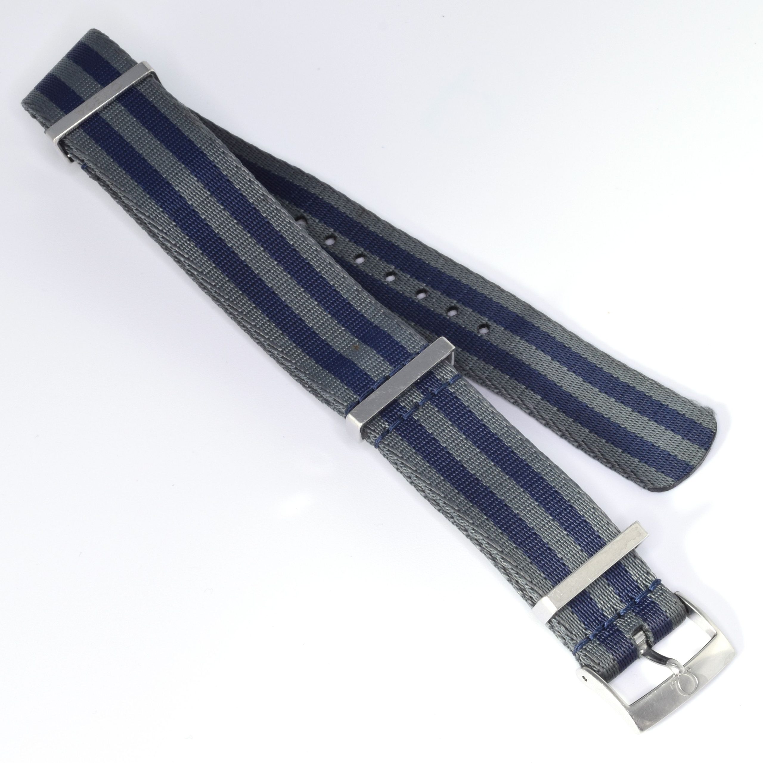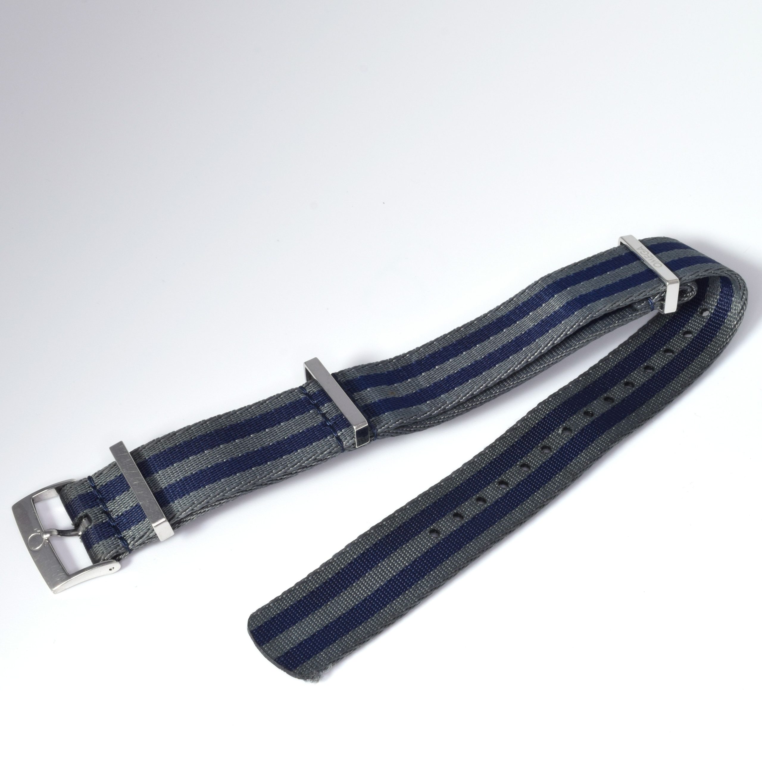 - Genuine Omega Strap: Authentic Omega Seamaster NATO CWZ007886 blue and grey striped strap.