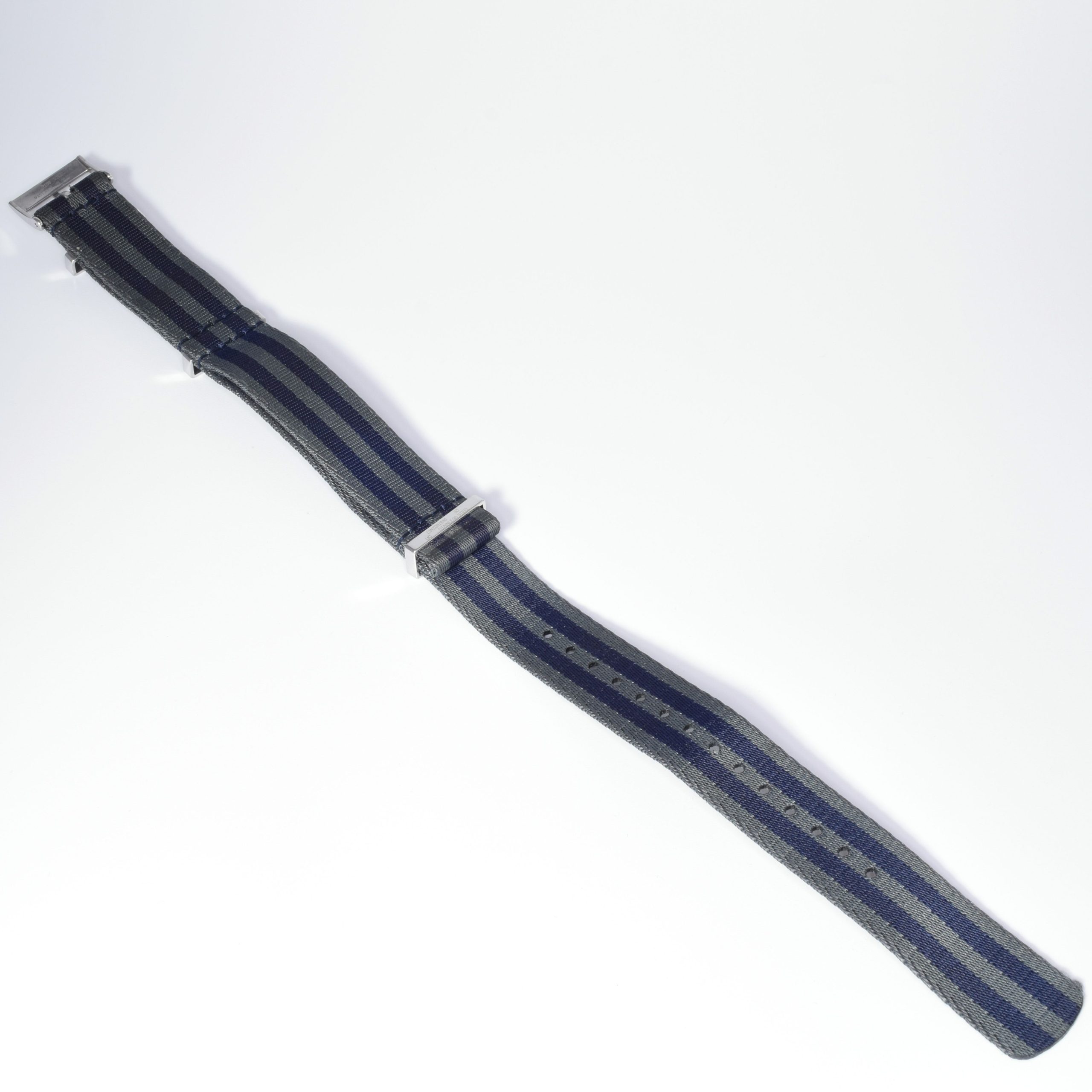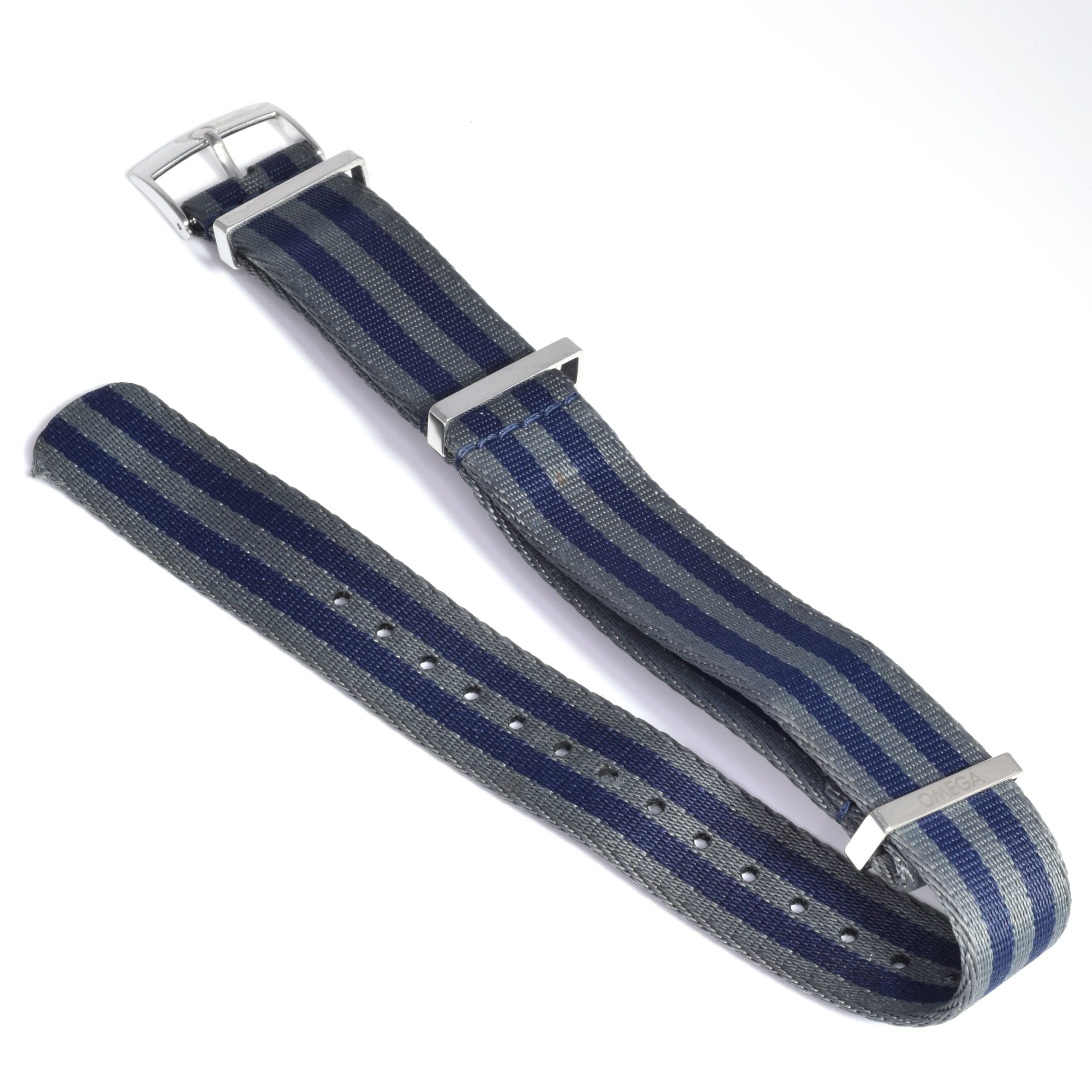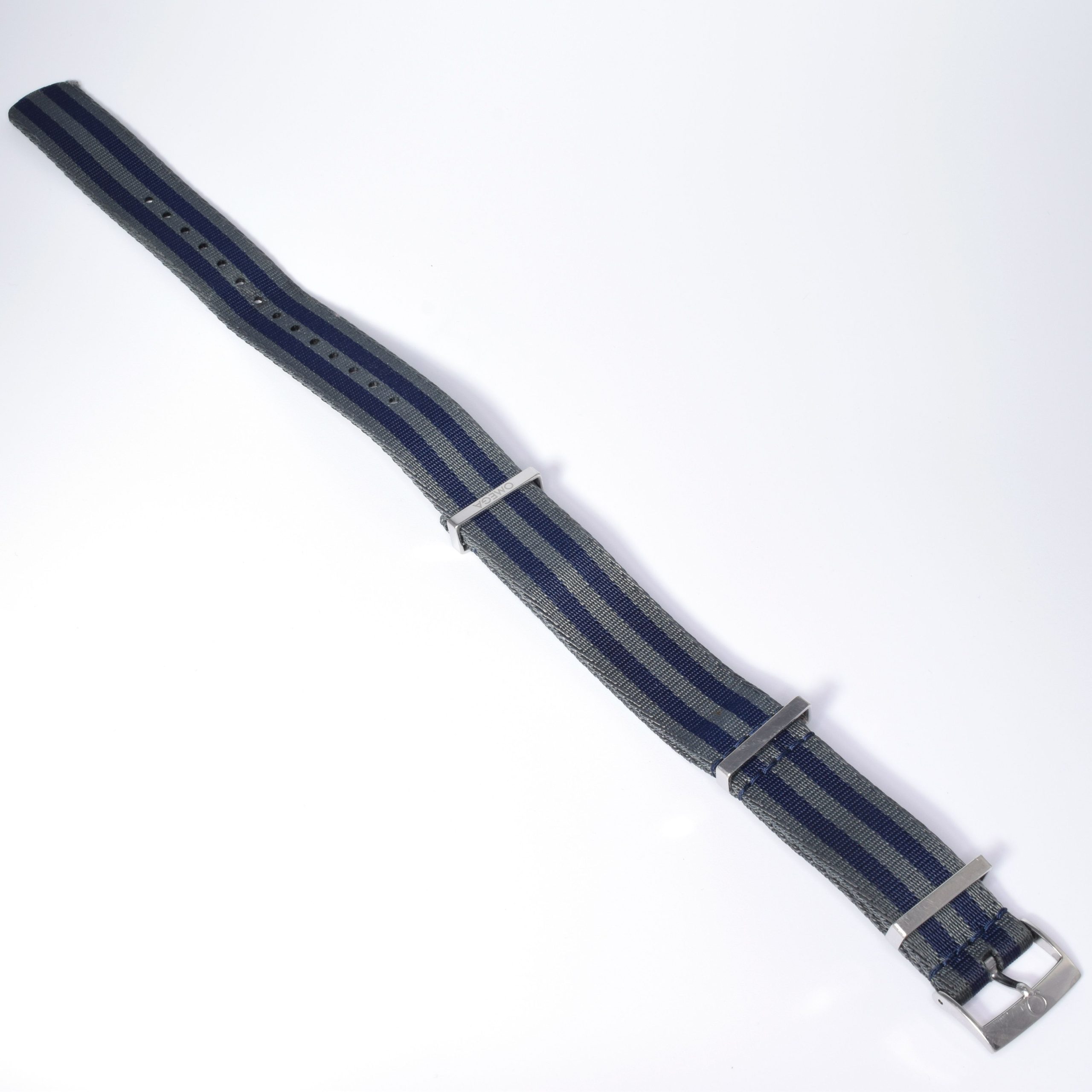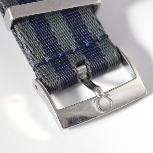 - Genuine Omega Strap: Authentic Omega Seamaster NATO CWZ007886 blue and grey striped strap.