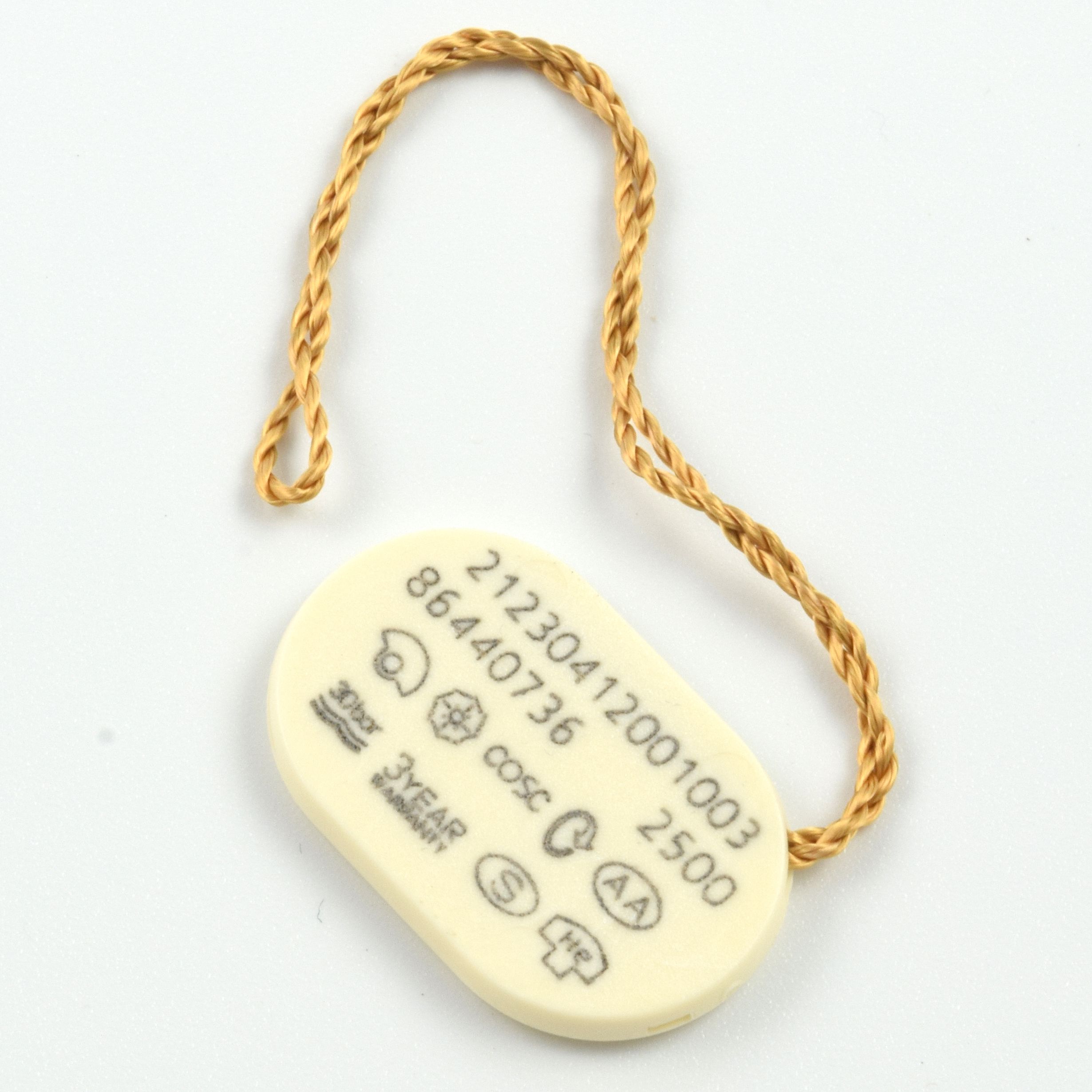 This authentic Omega Seamaster Steel Chronometer Diver 300m cream hang tag is designed for the 212.30.41.20.01.003 model. It measures approximately 30mm by 20mm and includes the original string for secure attachment.